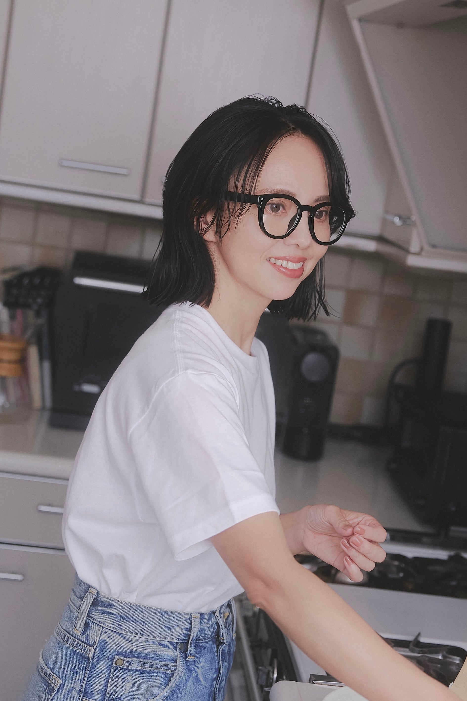 やや大きめのフレームが光や影をコントロールし、表情をふわりと整える。